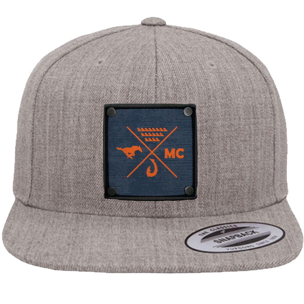 The 2024 MC Swim Team Yupoong Heather Gray hat is made of a blend of 80% acrylic and 20% wool. This hat has a structured, six-panel, and high-profile design, with a flat bill featuring a green undervisor.  Sewn eyelets and a sn...